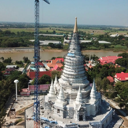 WAT AMPHAWAN PAGODA has been using Comansa Crane 10CJ140-8t, free standing height under hook is 87m. This is highest free standing height in Thailand, and in South East Asia.
