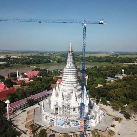 วัดอัมพวันใช้เครนคอมมานซ่า 10CJ140-8t ความสูงเมื่อยกโดยอิสระใต้ขอ 87 เมตร ถือเป็นความสูงเมื่อยกโดยอิสระที่สูงที่สุดในประเทศไทยและในเอเชียตะวันออกเฉียงใต้